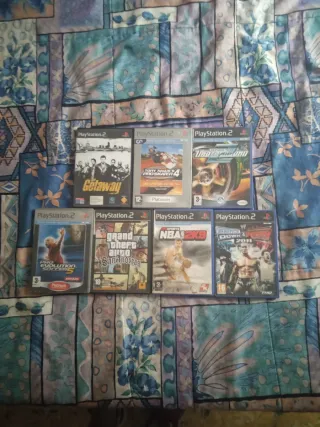 Lote de siete videojuegos para PlayStation 2. - Getaway - Tony Hawk's Pro Skater 4 - Need for Speed: Underground - Pro Evolution Soccer 5 - Grand Theft Auto: San Andreas - NBA 2K9 - WWE SmackDown vs. Raw 2011