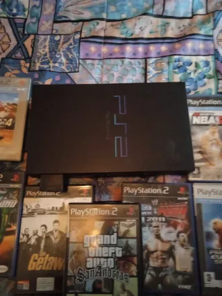 Consola PlayStation 2 en color negro, lista para horas de diversión. Incluye 7 videojuegos. - Tony Hawk's Pro Skater 4 - Midnight Club II - The Getaway - Grand Theft Auto: San Andreas - WWE 2011 - Pro Evolution Soccer 5 - NBA Shootout 2003 - Incluye mando de PlayStation 1 y 2 memorias