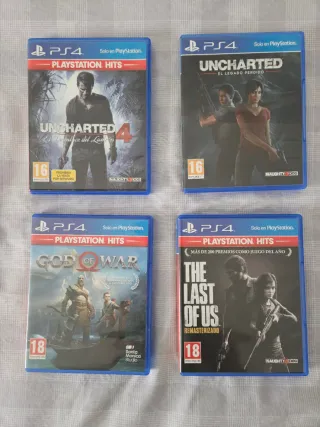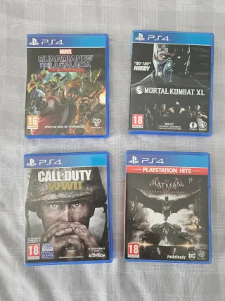 Videojuegos de PS4 a vender juntos o por separado. Entre 5 y 15€ por juego dependiendo del juego y la cantidad que compres (si compras varios hago descuento). Bien conservados y en buen estado. Juegos: - Uncharted 4 - Uncharted 5. El legado perdido - God of War - The Last of Us. Remasterizado - Guardianes de la galaxia. The telltale series - Mortal Kombat XL - Call of Duty WWII - Batman. Arkham Knight - Watchdogs - Little nightmares - Until Dawn - Man of Medan - Hashbro family fun pack - LEGO Jurassic World - LEGO Marvel Super Heroes 2 - LEGO DC Super Villanos