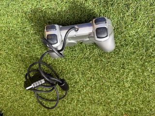 Mando genérico plateado para consolas PlayStation. - Diseño ergonómico. - Botones de acción y direccionales. - Conexión por cable.