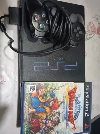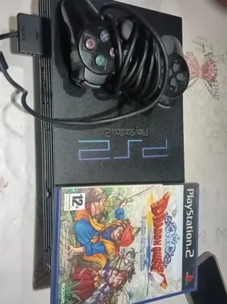 Consola PlayStation 2 en color negro, con su mando y cableado. - Incluye el juego Dragon Quest VIII: El periplo del Rey Maldito para PS2. - El juego está en perfecto estado, con manual y carátula en castellano.
