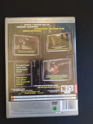 Videojuego Enter the Matrix para PlayStation 2, edición Platinum. - Juego de acción y aventura. - Basado en la película The Matrix. - Clasificación PEGI 16+.