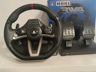 Volante de carreras Hori RWA Racing Wheel Apex para PlayStation 4. Diseñado para una experiencia de juego inmersiva. (casi no se ha usado) - Incluye pedales. - Diseño ergonómico para un agarre cómodo. - Acabado en negro con detalles plateados y rojos.