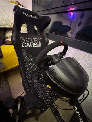 Simulador de carreras para PC y Playstation. Con señales de uso pero bien cuidado salvo orejera izquierda del bucket debido al sol,de ahi el precio. -Playseat Alcantara Ed.Exclusiva Project Cars -Volante Thrustmaster T300RS Ferrari Alcantara Edition. -Freno de mano Aikeec. Todo con sus cajas originales,se vende por falta de uso y espacio. Preferible trato en mano