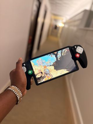 Consola1 portátil Playstation Portal en color negro y plata. Diseñada para una experiencia de juego inmersiva. - Pantalla de alta definición. - Controles ergonómicos integrados. - Conexión inalámbrica para streaming de juegos.