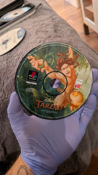 Disco de Tarzán de PlayStation 1 en su edición de black label, tiene marcas de uso de usarse pero funciona perfectamente, estuve jugando de principio a fin hace unos días.