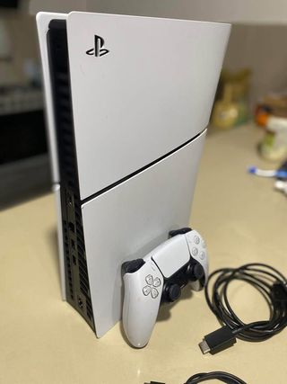Consola de videojuegos Playstation 5 Slim en color blanco. - Incluye mando DualSense. - Incluye cables de conexión.