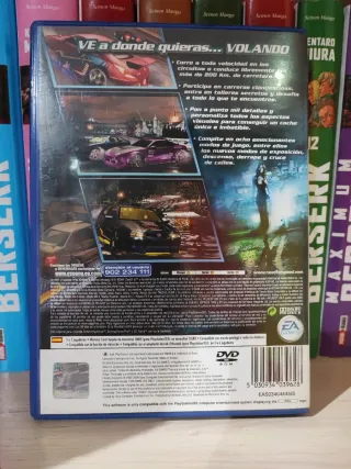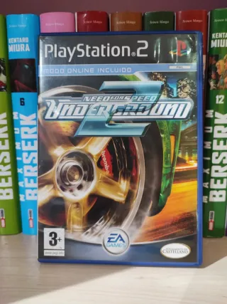 Videojuego Need for Speed Underground 2 para PlayStation 2. PAL España, edición black label (no Platinum). Incluye el manual de instrucciones. El disco presenta marcas de uso normales en este tipo de juegos, pero la caja, la carátula y el manual están en muy buenas condiciones.