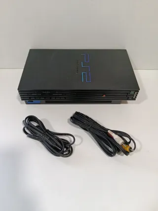 Consola de videojuegos clásica PlayStation 2 modelo Fat. - Diseño elegante en color negro. - Modelo Fat de Sony. Incluye cables de TV La consola funciona perfectamente,el mando no se ha probado por falta de pilas