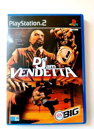 Videojuego Def Jam Vendetta para PlayStation 2 (PAL España). Caja, disco y manual incluidos; funciona perfectamente. Ideal para coleccionistas o fans del género de lucha/Hip-Hop, incluye a artistas como DMX, Ludacris, Method Man, NORE, Redman, Scarface, WC y muchos más. #DefJamVendetta #PS2 #PlayStation2 #RetroGaming #VideojuegoCompleto #Colección #Lucha #HipHop
