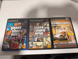 Pack de dos videojuegos para PlayStation 2: Grand Theft Auto: Vice City y Grand Theft Auto: San Andreas. - Incluye también Ultimate Cheats para San Andreas. - Juegos de acción y mundo abierto. Ambos completos con posters sin abrir!!