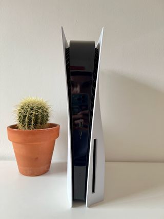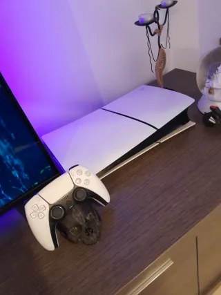Consola de videojuegos Playstation 5 version disco en color blanco. - Incluye un mando. - Incluye base original + base para cargar mandos y guardar juegos. - 3 juegos de regalo. - Acabada de limpiar - Primera version de la play 5 que salio. - No envio.