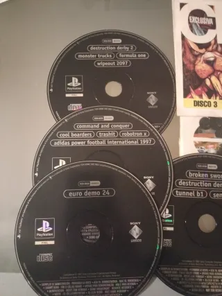 Lote de 9 discos de demos para PlayStation 1. - Command & Conquer - Destruction Derby 2 - Excalibur 255 - Namco Museum - War Hammer - Tunnel B1 - Spider - Disrupteron - Victory Bow - Force Tenka - Crash Bash - Demo One - Etc