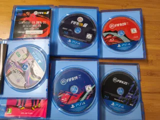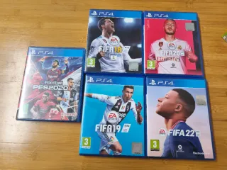 Pack de cinco videojuegos para PlayStation 4. - FIFA 18 - FIFA 19 - FIFA 20 - FIFA 22 - PES 2020 Precio Negociable Venta en persona y envío por Wallapop. Se venden por separado.