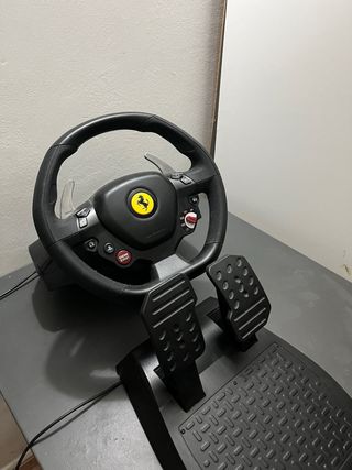 Volante de carreras con licencia oficial Ferrari para PlayStation 4. Incluye pedales. - Diseño inspirado en el mundo del motor. - Botones y levas de cambio integrados en el volante. - Base con sistema de fijación. - Pedales con reposapiés.