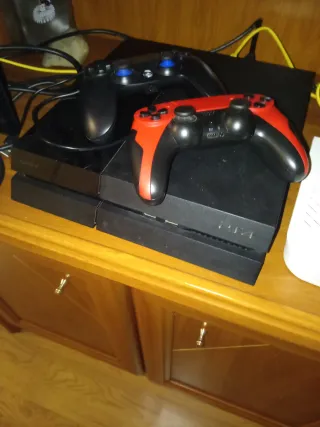 Consola PlayStation 4 de 500GB en excelente estado. Incluye dos mandos. Y 2 juegos físicos de regalo - Consola en color negro. - Un mando en color rojo. - Un mando en color negro.