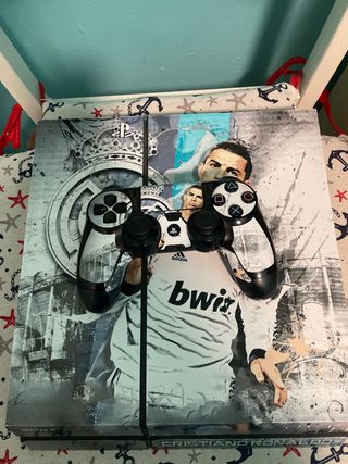 Consola PS4 personalizada con diseño de Cristiano Ronaldo y el Real Madrid. - Diseño exclusivo multicolor. - Incluye mando a juego.
