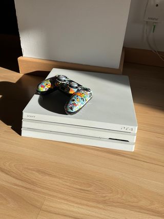 Consola de videojuegos Ps4 Pro con disco duro de 1TB. - Diseño con detalles multicolor. - Acabado principal en blanco.