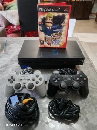 - Consola PlayStation 2 modelo FAT sin caja,en color negro con una tara estética(última foto)Incluye un juego. - 100% funcional. - Juego: Buzz! El Gran Reto. - Dos mandos: uno gris y uno negro. - Todos los cables. - Muy Negociable.