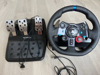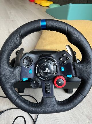 Volante de conducción Logitech G29 Driving Force con su pedalera. - Volante con acabado en cuero. - Pedalera de tres pedales. - Compatible con PlayStation. Muy buen estado. Funciona correctamente. Envio con su caja orignal