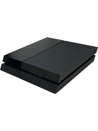 Consola PlayStation 4 en color negro. - Diseño elegante y moderno. - Superficie lisa y brillante.