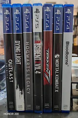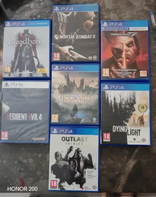 Lote de 7 juegos de PlayStation 4 y 5 - Bloodborne - Mortal Kombat X - Tekken 7 - Resident Evil 4 (PS5,precintado) - Hogwarts Legacy - Dying Light - Outlast Trinity - No todos son pal España pero si todos son multilenguaje.