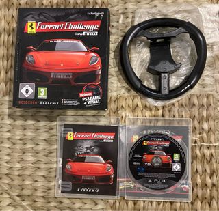 Vendo el juego Ferrari Challenge ed. coleccionista completo en español para PlayStation 3. - Incluye la caja exterior, el juego con su manual y el volante para el mando. - Tiene licencia oficial de Ferrari (número de serie de la caja del bluray). - Solo venta con envío.