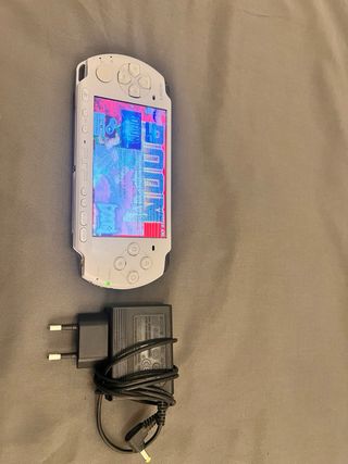 Consola portátil Sony PSP 3000 en color blanco perla. Incluye cargador tarjeta juegos y bateria. - Leve grieta en lateral trasero se ve en fotos - Funciona todo 100% - Modelo PSP-3000. - Color blanco perla.