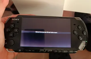 Consola portátil Sony PSP 3000 en color negro. INCLUYE - Batería en buen estado (hasta 6 horas de uso) - MicroSD de 32GB - Estuche - Cargador Juegos: - Gran Turismo - MotoGp - Lego Indiana Jones - 3 juegos infantiles. (Bob esponja, etc.)