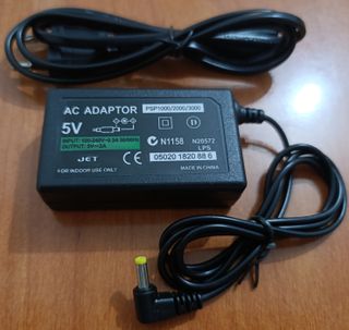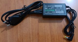 Adaptador de corriente AC para consolas PSP. - Voltaje de entrada: 100-240V. - Corriente de entrada: 0.3A. - Frecuencia: 50/60Hz. - Voltaje de salida: 5V. - Corriente de salida: 2A. - Diseñado para uso en interiores.