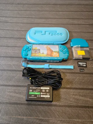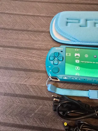 PSP 3000 Turquesa 64GB + Cargador Original + Funda