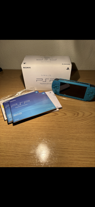Consola Sony Playstation portable PSP slim & lite 3004 de color azul 💙 un color muy bonito totalmente original, como se ve en las imágenes la consola se encuentra en exelentes condiciones, lee perfectamente los discos UMD y las memorias, audio wifi USB todo probado y totalmente funcional, consola usada puede tener algunas marcas por el uso o desgaste por el tiempo para mayor detalle mirar bien las imágenes. Sistema 6.61 Incluye: - Cargador nuevo - adaptador microSD 16GB - Batería Nueva - funda protectora - pulsera de mano