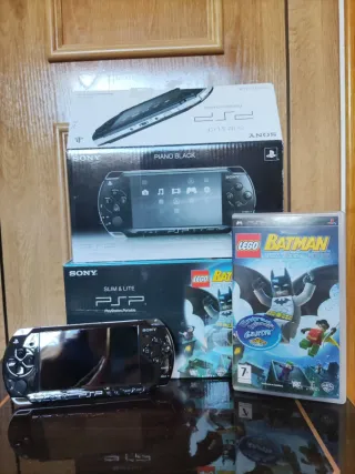 Consola portátil Sony PSP Slim 2000 en color negro. Contiene muchos juegos de PSP y PSX, los de la PSP llevan savegame con la partida al 100%. Batería nueva y dos cargadores. Está como nueva, era de mi novia y la usó poquísimo. Viene con carcasa, funda y tarjeta sd.
