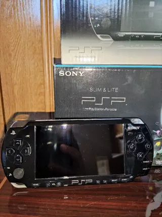 Consola portátil PSP Slim en color negro. - Diseño elegante y compacto. - Pantalla nítida para juegos y multimedia. - Controles ergonómicos para una experiencia de juego cómoda. - Memoria 64gb. - Con cargador.