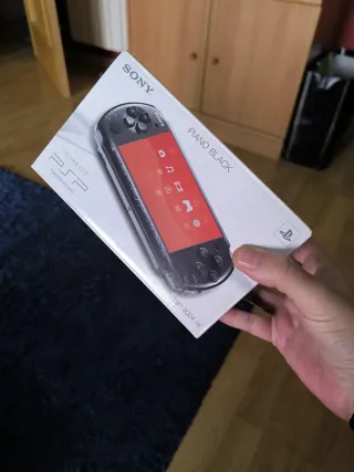 Consola portátil Sony PSP Slim & Lite en color Piano Black. Nunca usada. - Modelo: PSP-2004 PB - Color: Negro Piano Psp nunca usada,cuando yo la compre,el chico la abrio para hacerle fotos y venderla,nunca se uso,el celo se volvio a pegar y ahora esta muy enganchado y no me atrevo a levantarlo,se puede cortar a peticion para verla.