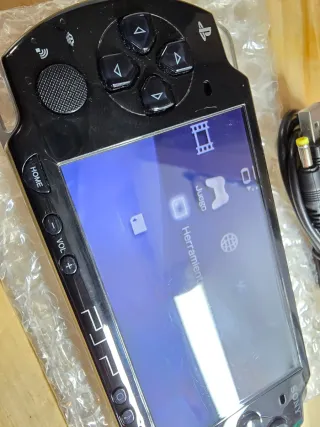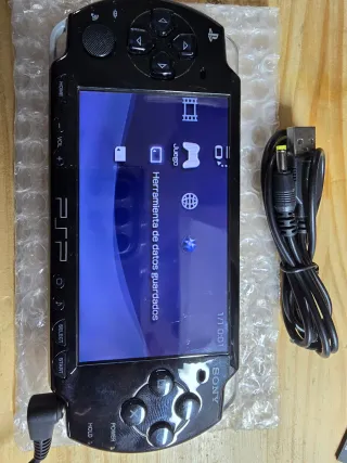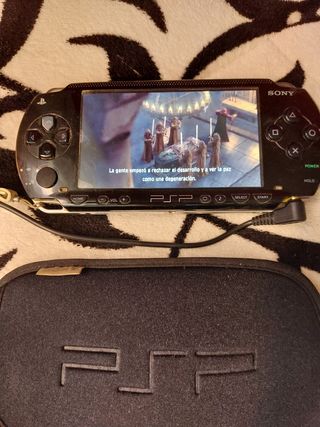 Consola portátil Sony PSP modelo 2004 en color negro. Ideal para llevar tus juegos y entretenimiento a donde vayas. - Diseño ergonómico. - Pantalla de alta calidad. - Botones de control intuitivos. funciona todo esta perfecta pero la bateria esta muerta se entrega con cable de carga usb y tarjeta de 1gb de regalo y juego hay que cambiar la bateria