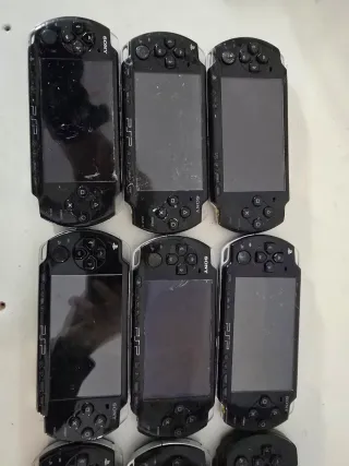 Consola portátil Sony PSP en color negro. Ideal para llevar tus juegos a todas partes. - Diseño ergonómico. - Pantalla de alta resolución. todas para piezas tal cual 4 modelos 2004 A 28€ la unidad 4 modelos 3004 A 30€ la unidad 1 psp street A 25€