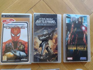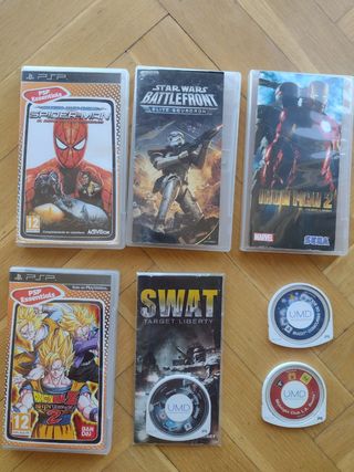 Vendo una colección de juegos para PSP en buen estado. Incluye: - Spiderman: El reino de las sombras - Star Wars: Battlefront II: Elite Squadron - Iron Man 2 - Dragon Ball Z: Shin Budokai 2 - SWAT: Target Liberty Los juegos se venden con sus cajas y discos UMD. Algunos juegos traen su manual original de instrucciones. NO se hacen envíos por menos de 15€ Cualquier duda escribirme.
