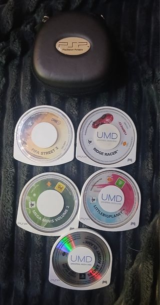 5 juegos y la funda original psp para q t los lleves dnd kieres. Algun protector de umd se ha reparado y comprobado su funcionamiento
