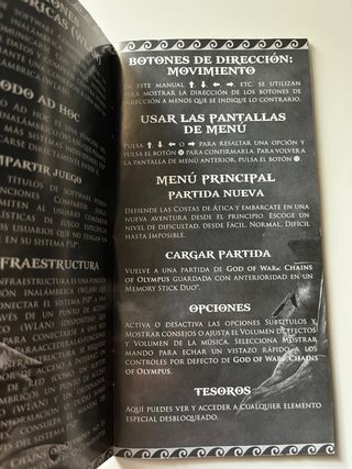 Manual de instrucciones original de God of War: Chains of Olympus para PSP. Está en buen estado y completo. - Manual de instrucciones en español. - Para PlayStation Portable (PSP). - Perfecto para coleccionistas. - Tiene una pegatina en la portada