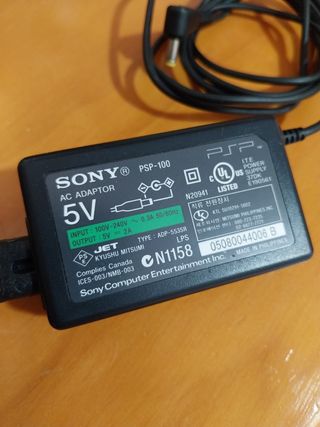Vendo cargador original de la videoconsola PlayStation Portable (PSP). Está en buen estado y listo para usar. - Modelo: PSP-100 - Adaptador de corriente alterna - Salida: 5V - Incluye cable de alimentación.
