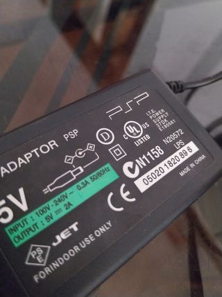 Vendo cargador para PlayStation Portable (PSP). Está en buenas condiciones. Tiene el cable exterior un poco roto pero funciona correctamente - Funciona correctamente. - Incluye cable de alimentación. - Modelo: N1158