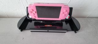 Preciosa consola PlayStation Portable en color rosa. Se incluye una base con altavoces. - En muy buen estado. - Perfecta para jugar a tus juegos favoritos. - Ideal para coleccionistas.Juegos y películas también en venta