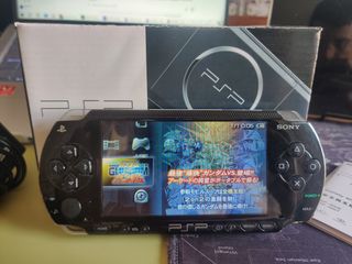 Consola portátil Sony PSP 1000 en color negro en muy buen estado. Incluye cargador, batería nueva a estrenar, caja de la consola y manual réplica. La consola es la versión japonesa pero todo está en español y no influye en mada. Incluye el juego Kidou Senshi Gundam.