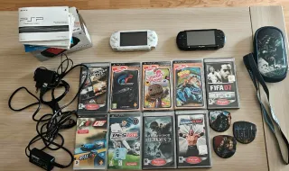 Se vende pack de consolas PSP en color blanco y negro, junto con varios juegos. - Consola PSP blanca. - Consola PSP negra. - Juego Gran Turismo. - Juego LittleBigPlanet. - Juego Crash Bandicoot. - Juego FIFA 07. - Juego F1 2006. - Juego PES 2013. - Juego Medal of Honor Heroes 2. - Juego WWE SmackDown vs. Raw 2007. - Cargador y cables. - Funda de transporte.