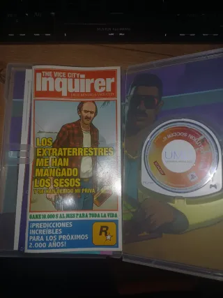 Juego Mítico de la PSP. La portada de la carcasa está desgastada visiblemente, pero el juego funciona perfectamente
