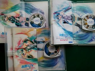 Para Sony PSP Trilogía formada por: - Hatsune Miku Project Diva - Hatsune Miku Project Diva 2nd - Hatsune Miku Project Diva extend Juegos en japonés (no salieron en Europa) totalmente compatibles con PSP de aquí, ya que son multi región. Precio no negociable. Envío certificado 5€. Acepto Bizum, PayPal amigos o transferencia bancaria.