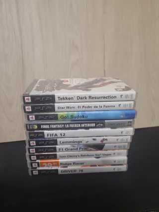 Colección de 10 videojuegos para PSP. - Tekken: Dark Resurrection - Star Wars: El Poder de la Fuerza - Go! Sudoku - Final Fantasy: La Fuerza Interior - FIFA 12 - Lemmings - F1 Grand Prix - Tom Clancy's Rainbow Six: Vegas(contiene el price of persia revelations) - Ridge Racer (contiene el wrc) - Driver 76 (contiene el need for speed prostreet) Se venden en su estado actual, precio no negociable.
