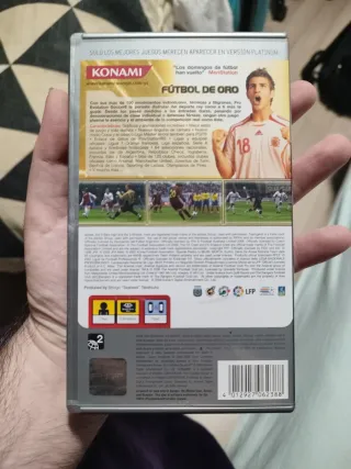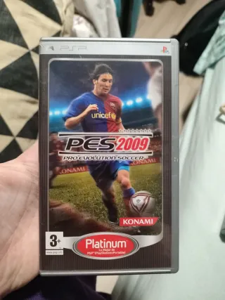 Videojuego Pro Evolution Soccer 2009 para PSP en buen estado. - El bueno, el de Messi. (El malo si no te gusta Messi) - Juego de deportes. Es como hacer deporte, pero peor. - Formato físico. No como tú o yo, que jugamos psp y no estamos en buen formato físico.