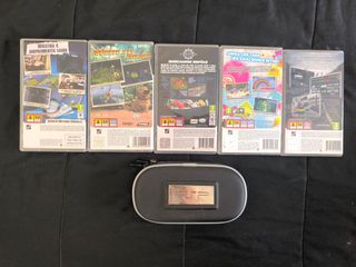 Se venden cinco juegos de PlayStation Portable (PSP) en perfecto estado. Incluyen: The Mystery Team, Up, Cars, LittleBigPlanet y Gran Turismo. También se incluye un estuche para la consola. - Los juegos están en buen estado. - Estuche protector incluido. La consola no tiene cargador y está sin batería cuando se guardo hace tiempo funcionaba bien, hacer oferta. Se vende junto o separado